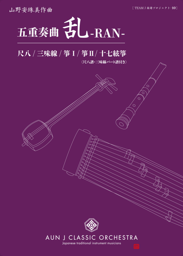 五重奏曲 乱-RAN-(尺・三・箏2・17)〈山野安珠美〉(A4判・28頁)※箏譜+尺八/三味線パート譜